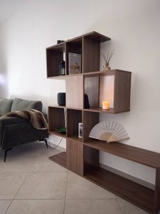 Cette superbe bibliothèque séparatrice exposera vos livres et plus beaux objets déco de façon très graphique. Ses cases aux dimensions variées forment une succession d'espaces rythmés.