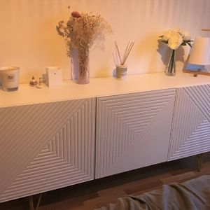 Buffet design blanc et métal doré 3 portes L160 cm OZEN