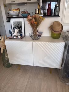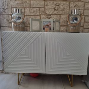Buffet design gravé blanc mat et métal doré 2 portes L107 cm OZEN