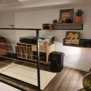 Chacun de vos vinyles trouvera sa place dans notre buffet BOOGIE. <br /> Certains pourront être rangés au même niveau que votre platine, pour pouvoir les feuilleter et choisir votre prochain morceau. Et les autres auront la possibilité d'être classés dans les quatre niches sous votre tourne-disque, pour les retrouver plus rapidement. - Caroline Marliac