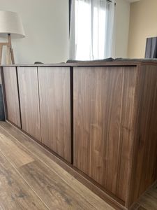 Pratique et esthétique, ce buffet bas (L180 x P43 x H79 cm) dissimule huit grands espaces de rangement (L40 x P34.5 x H32.7 cm) qui vous permettront de ranger facilement de la vaisselle, du linge de maison, des produits secs, des documents...