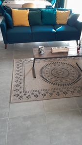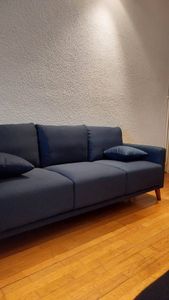 Ce canapé (L193 x P75.5 x H79 cm) a été conçu pour accueillir confortablement 3 personnes. Il combine 3 grands coussins de dossier ultra moelleux (rembourrage en fibres de polyester) à une assise composée de 3 couches de mousse (densités 28, 18 et 22 kg/m³) offrant un accueil souple et un maintien ferme. Deux petits coussins d'appoint (L34 x L34 cm) complètent l'ensemble pour toujours plus de confort.