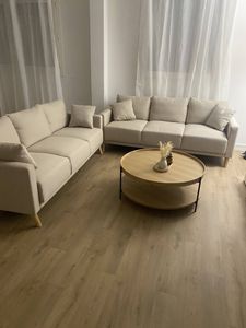 Le canapé MUNIK affiche un look scandinave pile dans l'air du temps et s'installe avec aisance dans tous les intérieurs. Le tissu beige (100% polyester) habille avec douceur et délicatesse cette assise familiale et réchauffera nos intérieurs. Il est associé à 4 pieds compas en hévéa massif pour la touche vintage.