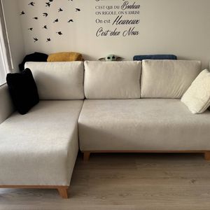 canapé-lit d'angle 3-4 places beige se transforme en