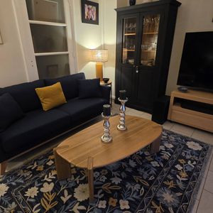 table basse en bois clair.