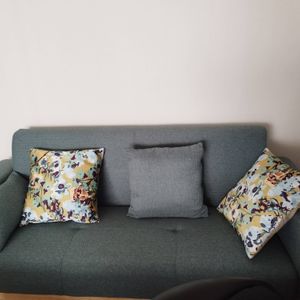 Avec ses dimensions totales L183.5 x P75 x H79 cm, ce canapé 3 places est le meilleur allié pour profiter de moments conviviaux dans le salon ou d'instants de détente confortablement installé ! Aussi agréable à l'oeil qu'au toucher, assise et dossier complétés par deux petits coussins d'appoint, voient leurs volumes garnis d'une mousse densité moelleuse 22 kg/m³. L'ensemble s'habille d'un tissu effet velours texturé - un revêtement qui accordera volontiers une note cosy et chaleureuse à votre intérieur.