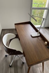 Chaise de bureau à roulettes design noir, bois foncé noyer et acier chromé  BENT