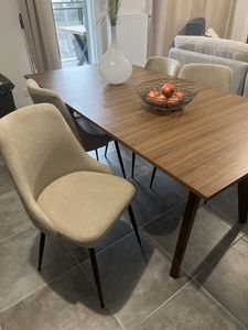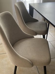 Entre leurs agréables sièges rembourés (mousse densité : 25 kg/m³), leurs larges dossiers, et trame en tissu effet velours (100% polyester), ces jolies chaises salle à manger beige naturel offrent un véritable confort. Avec elles, vous allez adorer vous éterniser à table...
