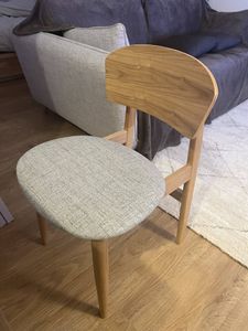 Ces chaises scandinaves à la silhouette simple et légère conjuguent confort et élégance. Réalisé à partir de contreplaqué frêne, le large dossier (L43 x H34.5 cm) peut être installé sur la structure dans les deux sens : arc de cercle orienté vers le haut ou vers le bas. Une chaise design, deux styles pour s'adapter à votre tablée ! L'accueillante assise rembourrée (L46 x P40.5 cm) scelle la promesse d'un confort durable. Habillé d'un joli revêtement lisse blanc, le siège s'accorde à merveille avec le bois et ses belles nuances dorées.