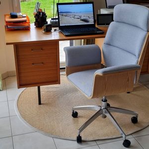 fauteuil de bureau moderne possède toutes les qualités d'une assise tendance. On apprécie particulièrement ses accoudoirs recourbés et son dossier rembourré qui donnent à l'ensemble un style unique.
