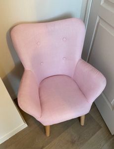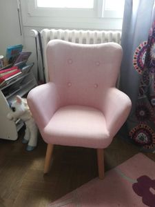 Fauteuil enfant scandinave en tissu rose poudré et bois clair BABY BRISTOL