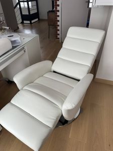 Le dossier et le repose-pieds du fauteuil relax NELSON s'inclinent tout naturellement en exerçant une pression sur les accoudoirs et le dossier (poignée latérale). Le passage de la position assise à la position relax se fait ainsi très simplement (degrés d'inclinaison maximum de 143 degrés). Le repose-pied s'incline simultanément que le dossier. Ce fauteuil relax se bloque dans la position souhaitée sans difficulté !