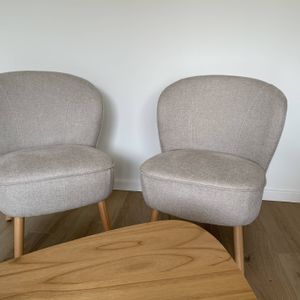 Fauteuil scandinave en tissu effet velours texturé beige et bois clair AMANITA