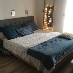 Lit 2 places 160x200 cm en bois et tissu gris capitonné LYNN