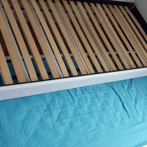 Ce lit gigogne blanc est idéal lorsque l'on souhaite aménager une petite chambre et profiter d'un couchage 2 places occasionnel. Ce lit 1 place en apparence peut en effet adopter différentes configurations et se transformer selon vos besoins en deux lits simples. Rapide et pratique, il suffit de quelques secondes pour faire apparaître le lit sur roulettes caché au ras du sol !