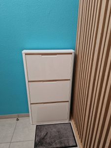 Meuble à chaussures 3 portes finition blanc laqué brillant L68 cm KIRK
