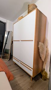 Armoire design avec penderie finition bois clair et blanc mat L120 cm HELIA