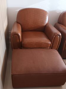 Pouf en cuir livré prêt à assembler. Montage simple, seuls les pieds sont à fixer.