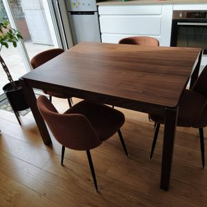 Table à manger extensible rallonges intégrées en bois foncé noyer rectangulaire L125-238 cm AGALI