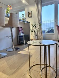 La fine structure en métal doré dessine de jolies lignes graphiques dans l'espace. Elle s'équilibre brillamment avec les plateaux (épaisseur 1 cm) en métal doré et métal noir. En résulte une silhouette singulière et délicate qui s'intègre facilement dans tous les intérieurs.