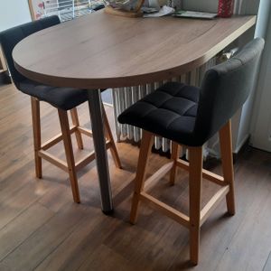 Tabourets de bar en tissu gris clair et bois H65 cm (lot de 2) KLARIS