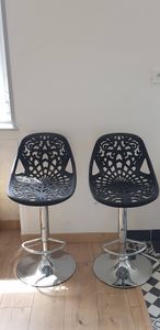 Tabourets de bar design avec motif baroque noir (lot de 2) BAROCCA