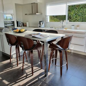 Tabouret de bar pivotant blanc et bois clair 65 cm pivotant 360° WALNUT