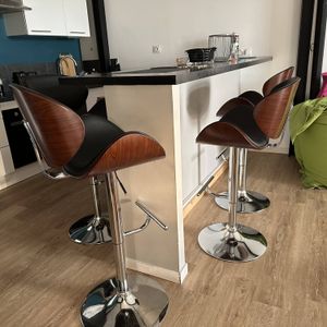Tabouret de bar design noir et bois clair WALNUT