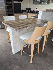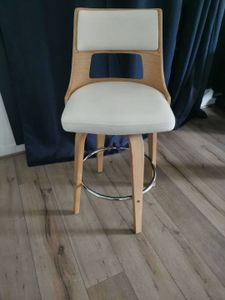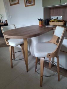 Tabouret de bar vintage pivotant noir et bois foncé GARBO