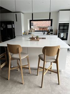 Tabourets de bar en bois clair chêne et tissu beige H65 cm (lot de 2) LUCIA