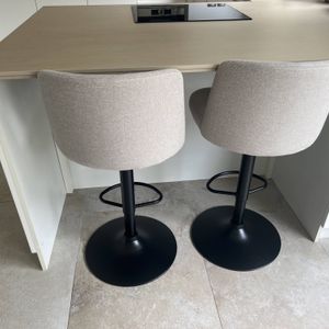 Tabourets de bar réglables en tissu effet velours texturé beige et métal noir (lot de 2) MONTI
