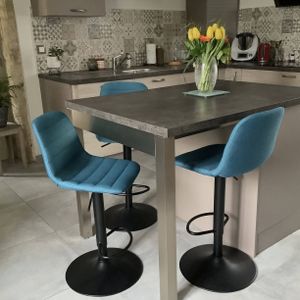 Le revêtement en polyester gris foncé pour l'assise et le métal noir mat pour le piètement apportent une touche contemporaine et épurée dans un séjour qui se veut tendance. Vendus par lot de 2, les tabourets de bar SAURY ont l'avantage de pouvoir se régler pour une hauteur d'assise de 61 à 83 cm. Pour plus de confort, l'assise pivote à 360°.
