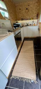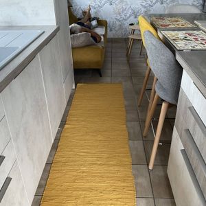 Le tapis AUBAGNE a été spécialement créé pour habiller le sol des pièces étroites. Avec ses 60 cm de large et ses 200 cm de long, il se glisse parfaitement dans les couloirs et les cuisines tout en longueur pour un rendu chaleureux et ultra déco. On aime sa teinte intemporelle et son esprit bohème qui s'accordent à de nombreux styles déco. Son joli tissage et ses fils de coton donnent à l'ensemble un look naturel dans l'air du temps.