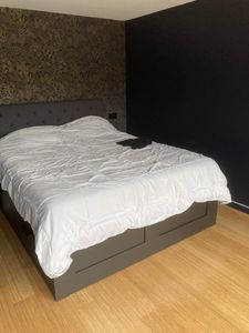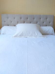 Tête de lit à poser, ENGUERRAND se glisse très simplement entre le lit et le mur. Avec ses